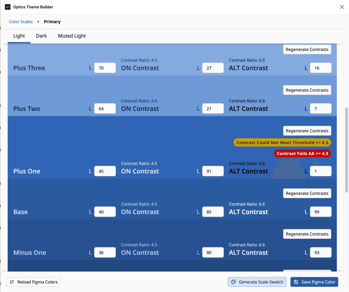 We created our Figma design plugin to speed up the starting point for new projects including configuring our internal design system, Optics, and making partners’ branding changes faster and simplify ensuring WCAG AA compliance, which is an Americans with Disabilities Act (ADA) requirement that makes web content more accessible to people with disabilities. We built a custom component into Figma previously, but it was less designer-friendly than we would have liked, and through using it we have seen places where further enhancements would be beneficial and would save time in the design process. Some of the features we built into the new plugin will facilitate creating and managing Optics color themes within Figma, produce WCAG AA compliant contrast colors, create a faster interface for tweaking colors, increase design consistency, and reduce the need to copy/paste. This tool amplifies the expertise of our designers while using Figma and our design system.