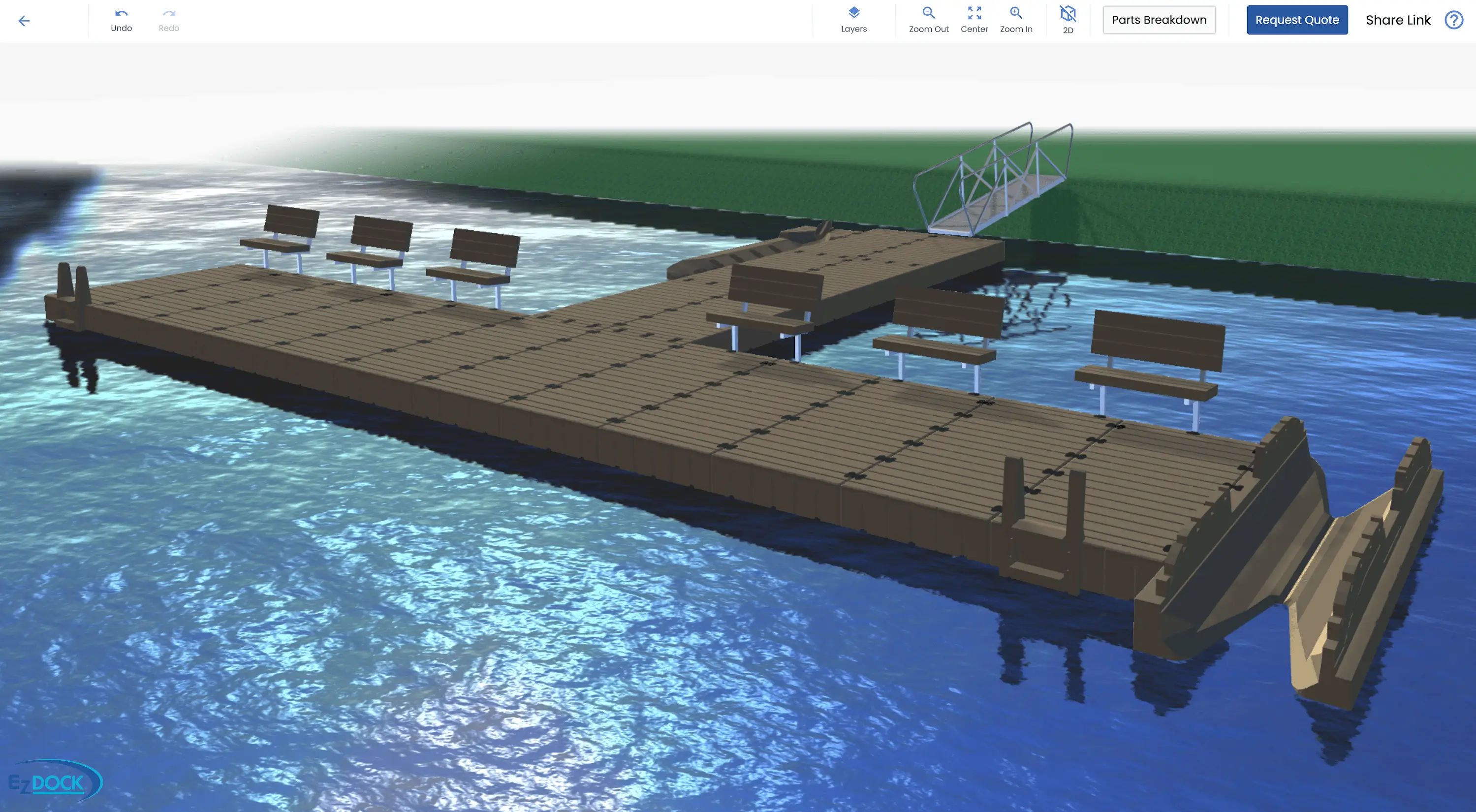 The system maps the components needed to complete the docks and creates a 3D visualization for its clients. These 3D visualizations showcase EZ Dock’s unique components specific to its products. These features reinforce EZ Dock’s reputation as an industry leader through its quality tool.