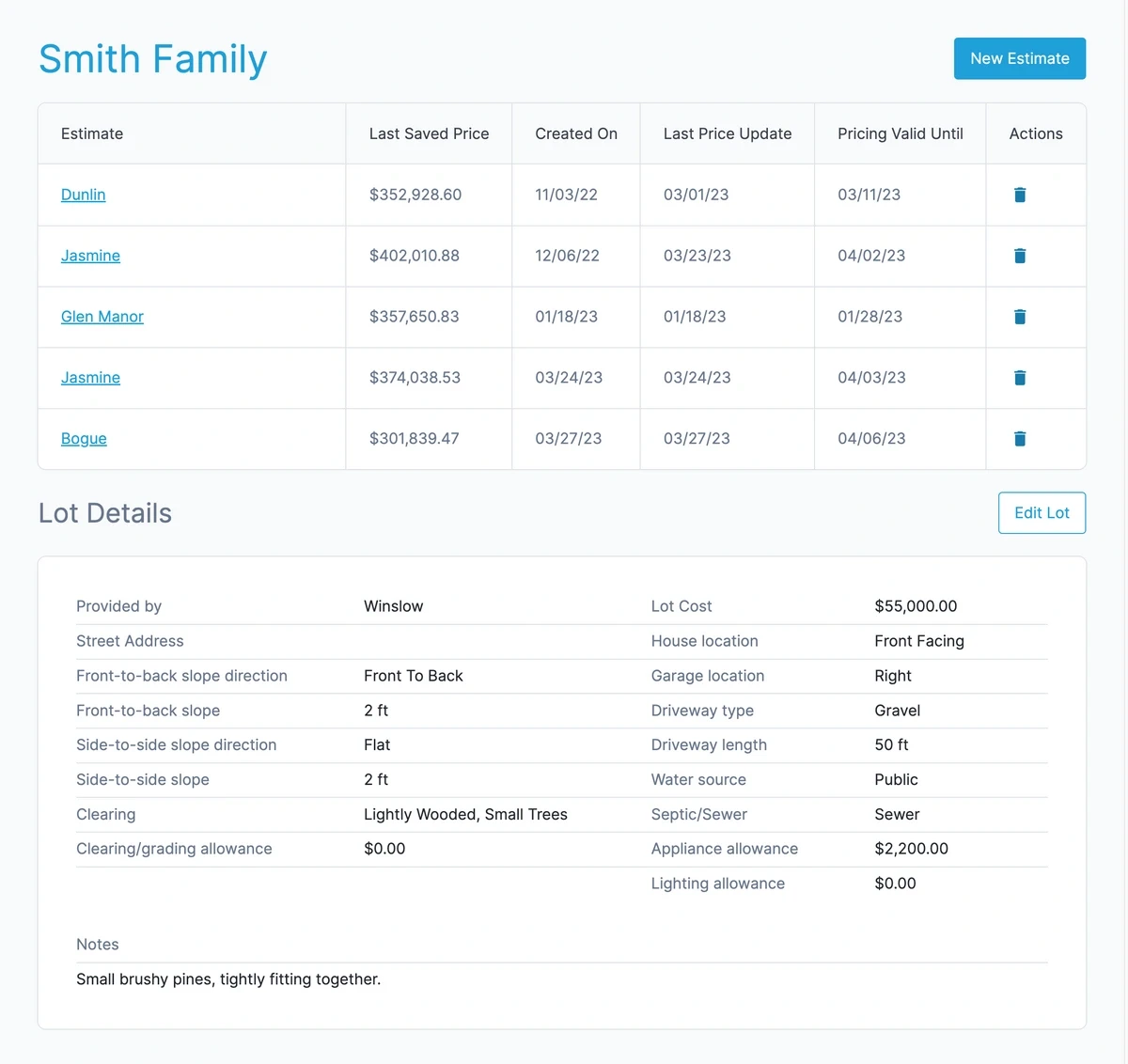 For Winslow Homes to scale and to keep up with the volatility of constantly changing construction prices, they needed a software system for their estimate process—including a way to use their standardized options consistently and would reduce the amount of time it takes to complete an estimate.